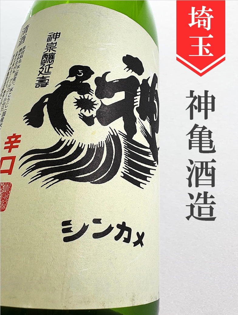 嘉永元年(1848年)創業の銘醸蔵。酒の名前は、蔵の裏手にあった天神池に棲むという神の使いの亀に因んでつけられました。 神亀酒造のお酒は、水は地中500メートルよりくみあげた地下水を使用して造りあげます。純米酒だけをじっくり丁寧に造り上げています。2年以上の長期熟成を経てから出荷されます。冷やよりも、常温もしくはぬる燗で旨さが引き立つお酒です。